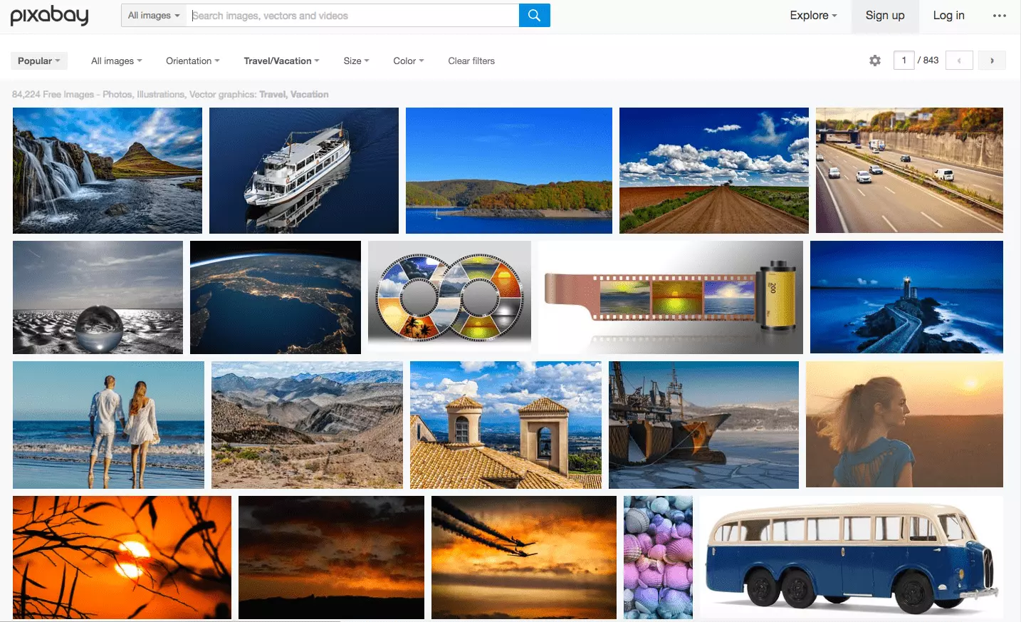 Платформа с обширной базой фотографий, векторных изображений и видео. Удобный поиск с возможностью задать нужный цвет, размер и ориентацию картинки, наличие версии на русском языке делают Pixabay особо привлекательным.