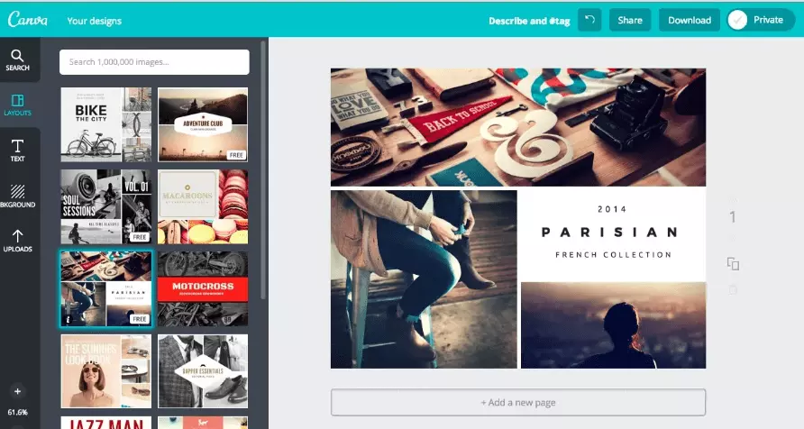 На сайте собраны миллионы фотографий, есть платный контент. Здесь также можно создавать графические дизайны для социальных сетей, презентаций, буклетов и открыток.