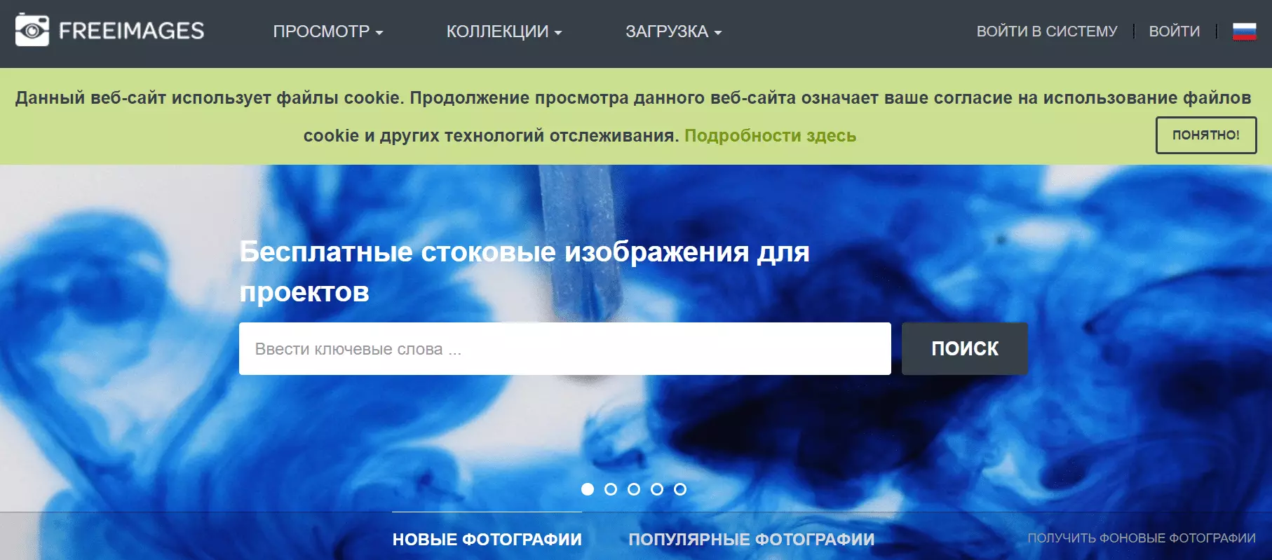 Сайт с удобной структурой и большим количеством бесплатных фото. Для удобства пользователей платный контент отмечен звездочкой.