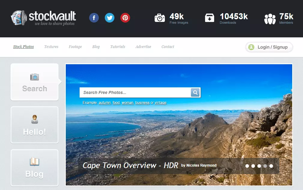 На фотостоке собраны работы фотографов-любителей. В тринадцати категориях сайта можно найти изображения на любые темы, от архитектуры и бизнеса до природы и световых эффектов.