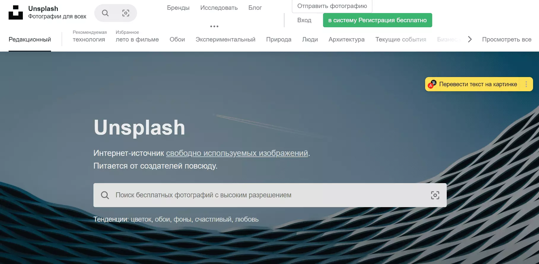 Все фотографии этой библиотеки бесплатны. Помимо привычных разделов есть категории «музыка», «культура и искусство», «финансы».