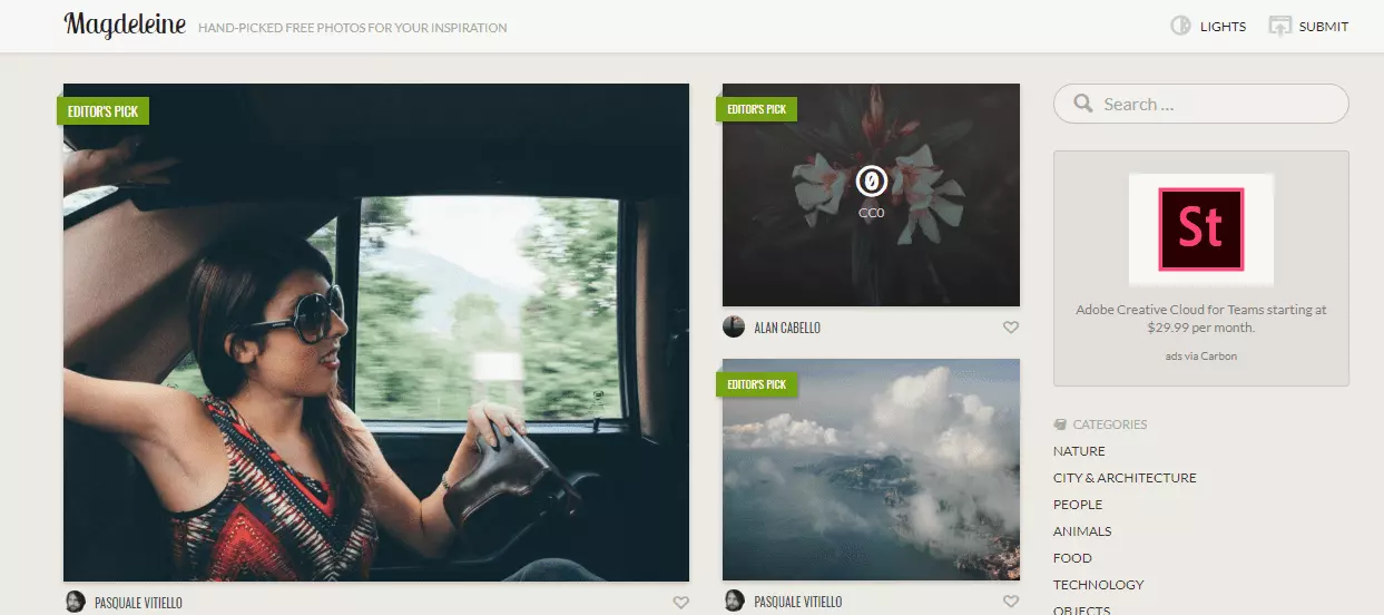 Подборка снимков разнообразной тематики для удобства поиска разбита на семь категорий. Весь контент имеет лицензию СС0.