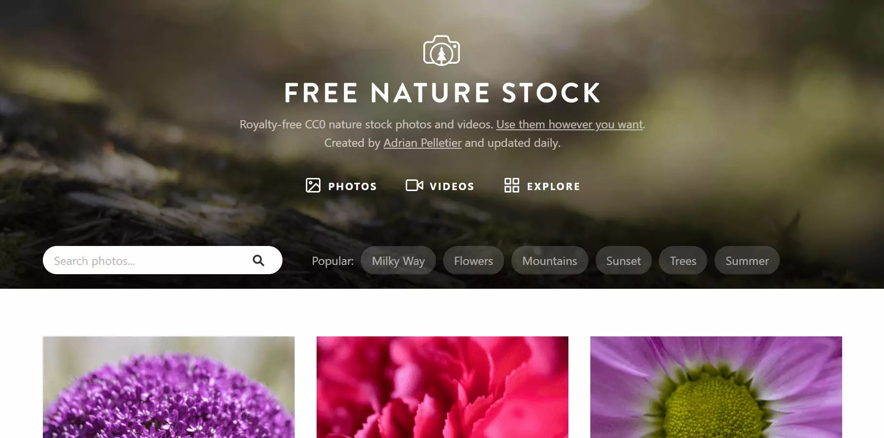 Популярный сток с функцией смены языка интерфейса. Здесь можно скачать фотографии, видео, обои для мобильных телефонов с лицензией СС0. Есть разбивка по категориям, цветам, популярности.