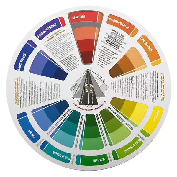 Цветовая таблица представлена в виде схемы - кольца, где все контрастные оттенки находятся противоположно по отношению друг к другу. Следует обратить внимание, что в таблице Итона равномерно сочетаются холодные и теплые тона.
