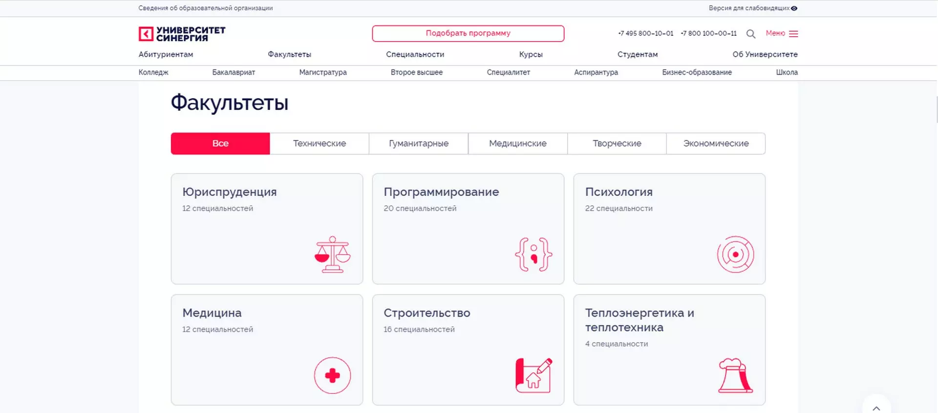 Модули на сайте Университета «Синергия»: