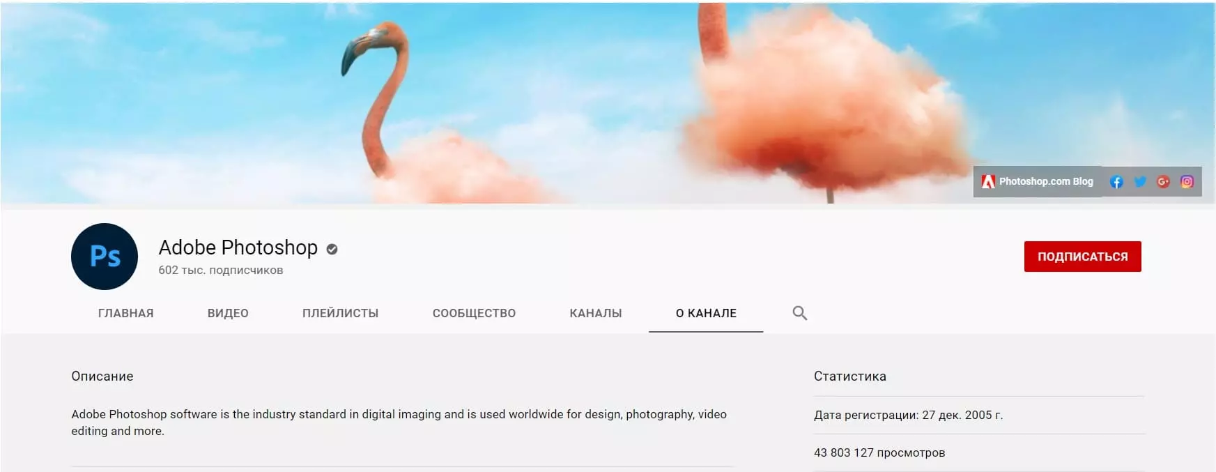 У Adobe есть специальный канал на YouTube для изучения Photoshop. На данный момент они опубликовали более 500 видеороликов, которые помогают своей аудитории глубже познавать.