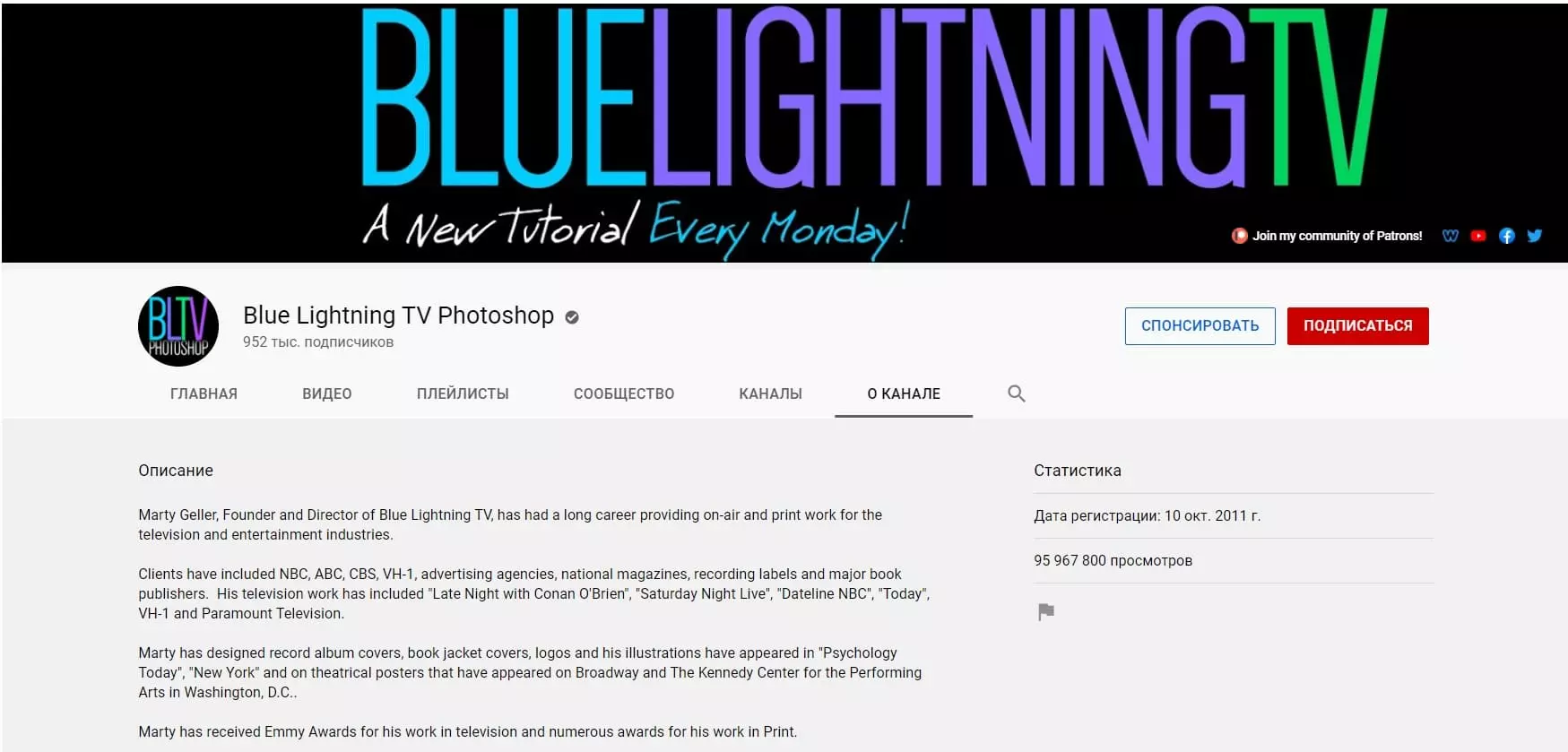 Blue Lighting TV Photoshop - ведущий канал YouTube. Он предоставляет впечатляющие учебные пособия для зрителей. В настоящее время у этого канала около 875 тысяч подписчиков