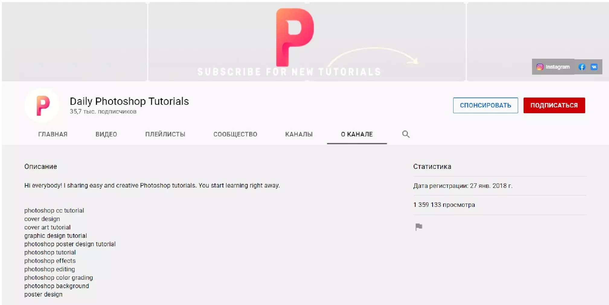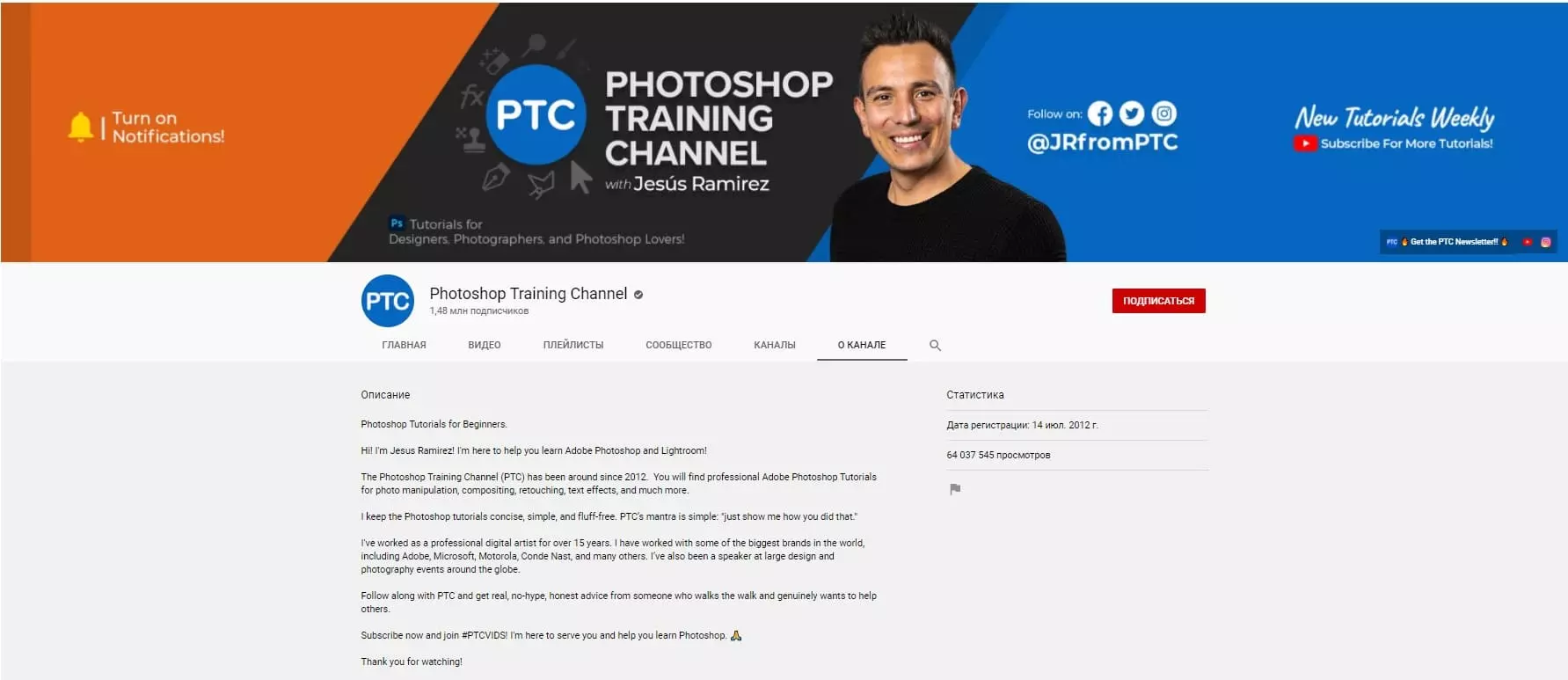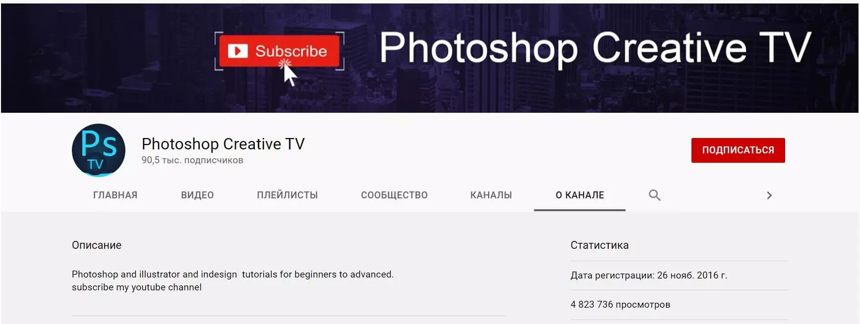 Еще один хороший канал для изучения руководств по Photoshop - Photoshop Tutorials - PSt. У канала 300 тысяч подписчиков. Цель - в кратчайшие сроки сделать вас квалифицированными и профессиональными.