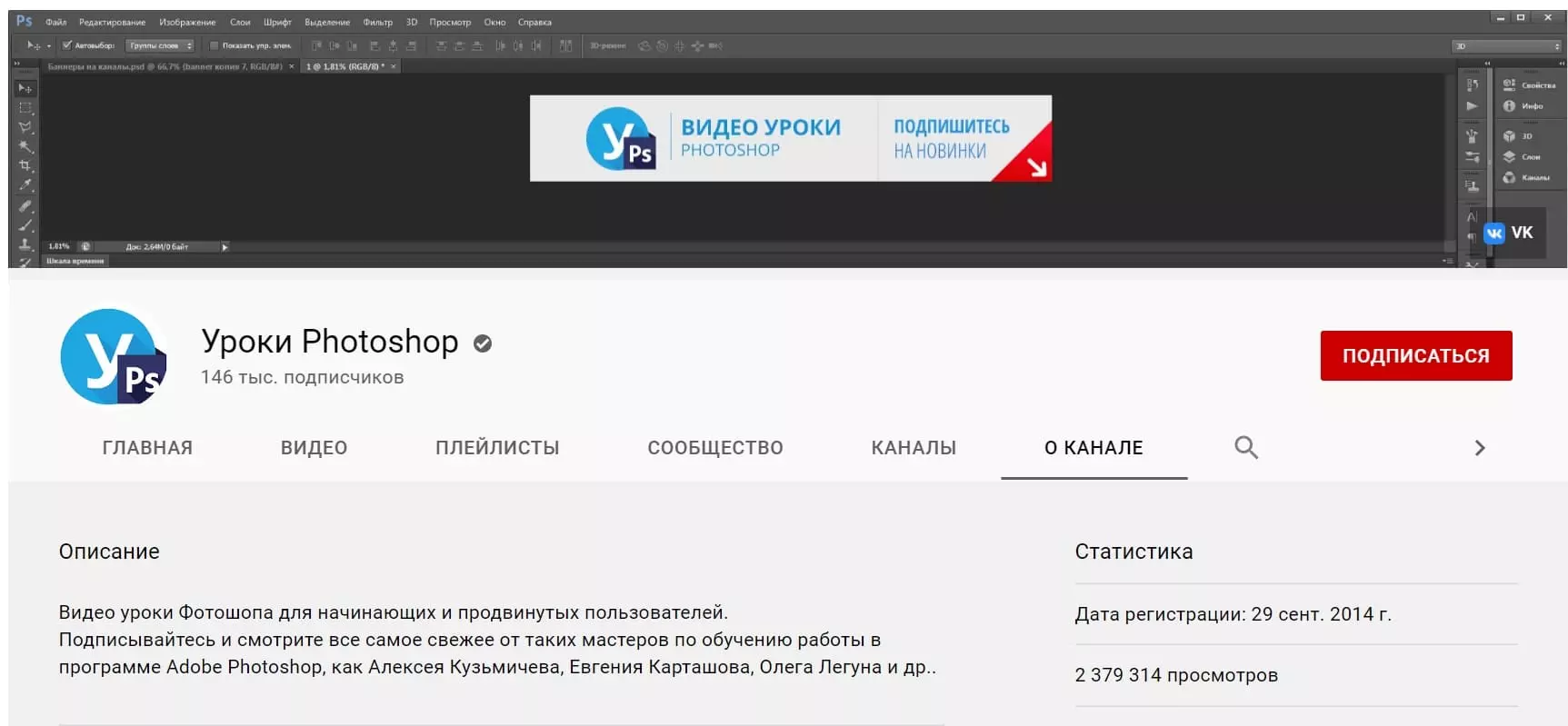 В этой подборке собраны двадцать каналов по обучению работе в Adobe Photoshop как с нуля, так и для более продвинутой аудитории. Однако стоит отметить, что в русскоязычном сегменте Youtube не так много качественных обучающих каналов.