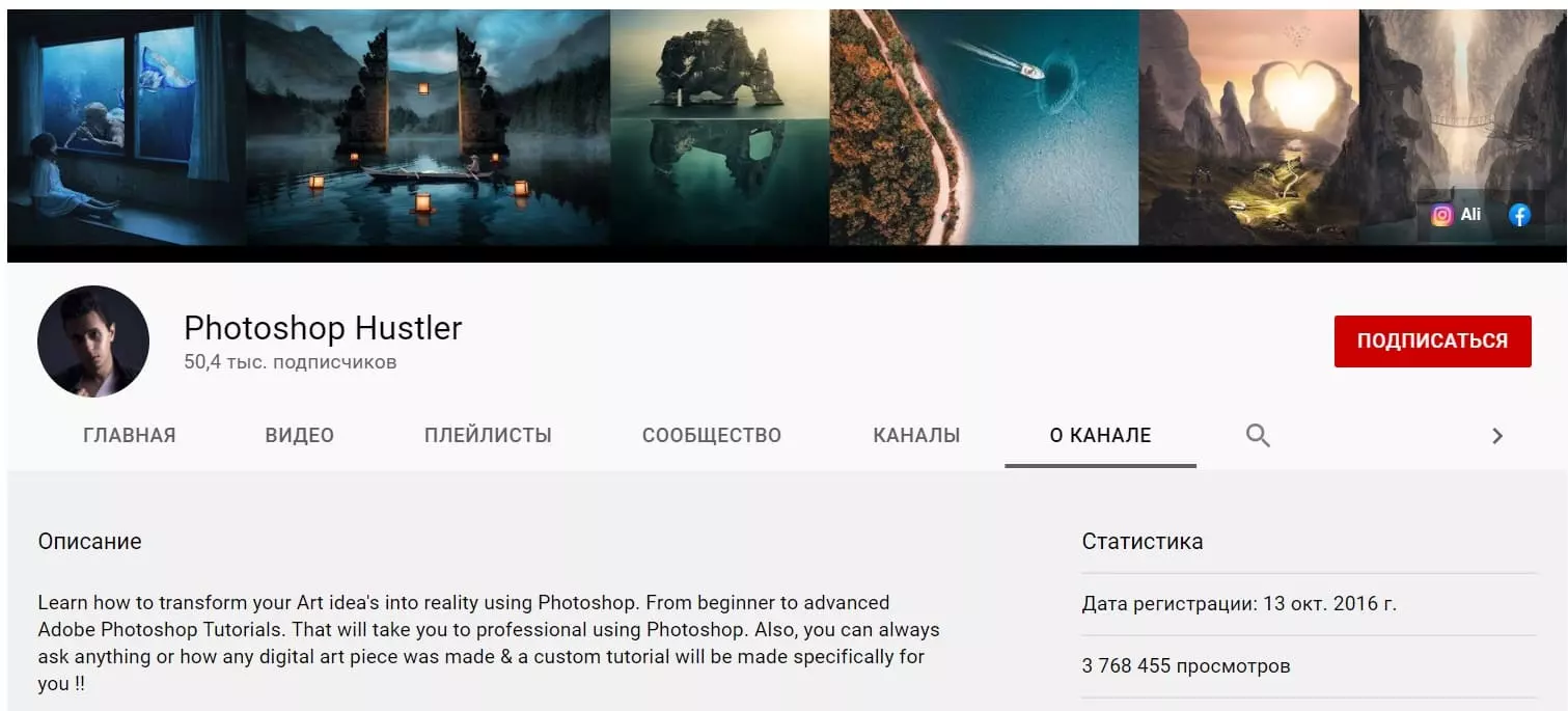 Photoshop Hustler - отличный канал на делающий упор на том, как вы можете воплотить свои художественные идеи в реальность с помощью Photoshop. У этого канала 33,8 тыс.