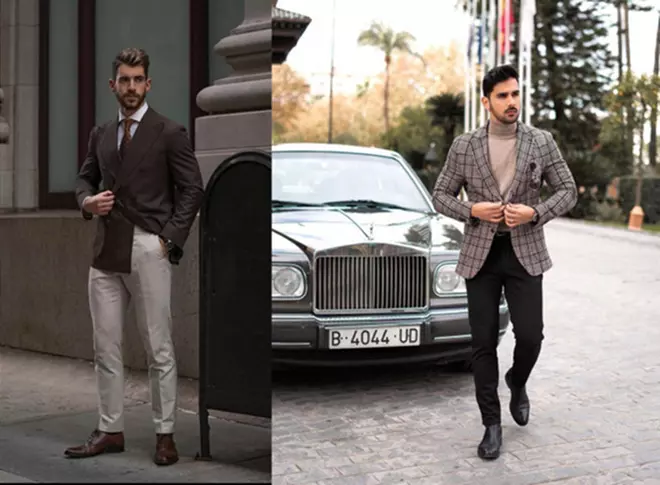 Мужчины всё чаще отказываются от галстука и позволяют себе расстегнуть пару верхних пуговиц рубашки, комбинируют цвета в верхней и нижней части костюма или надевают к пиджаку кожаные брюки.