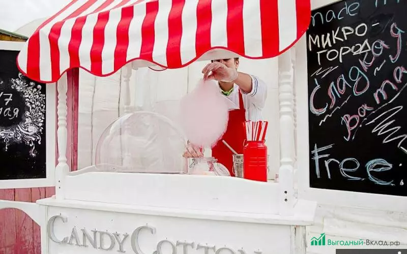 Вариант подходит для городов, которые пользуются популярностью у туристов. Открыть бизнес в маленьком городе можно с минимальными вложениями. При ограниченном капитале бизнесмен сам может продавать сладкую вату или попкорн по выходным дням. Полученные деньги можно направить на открытие новых точек.