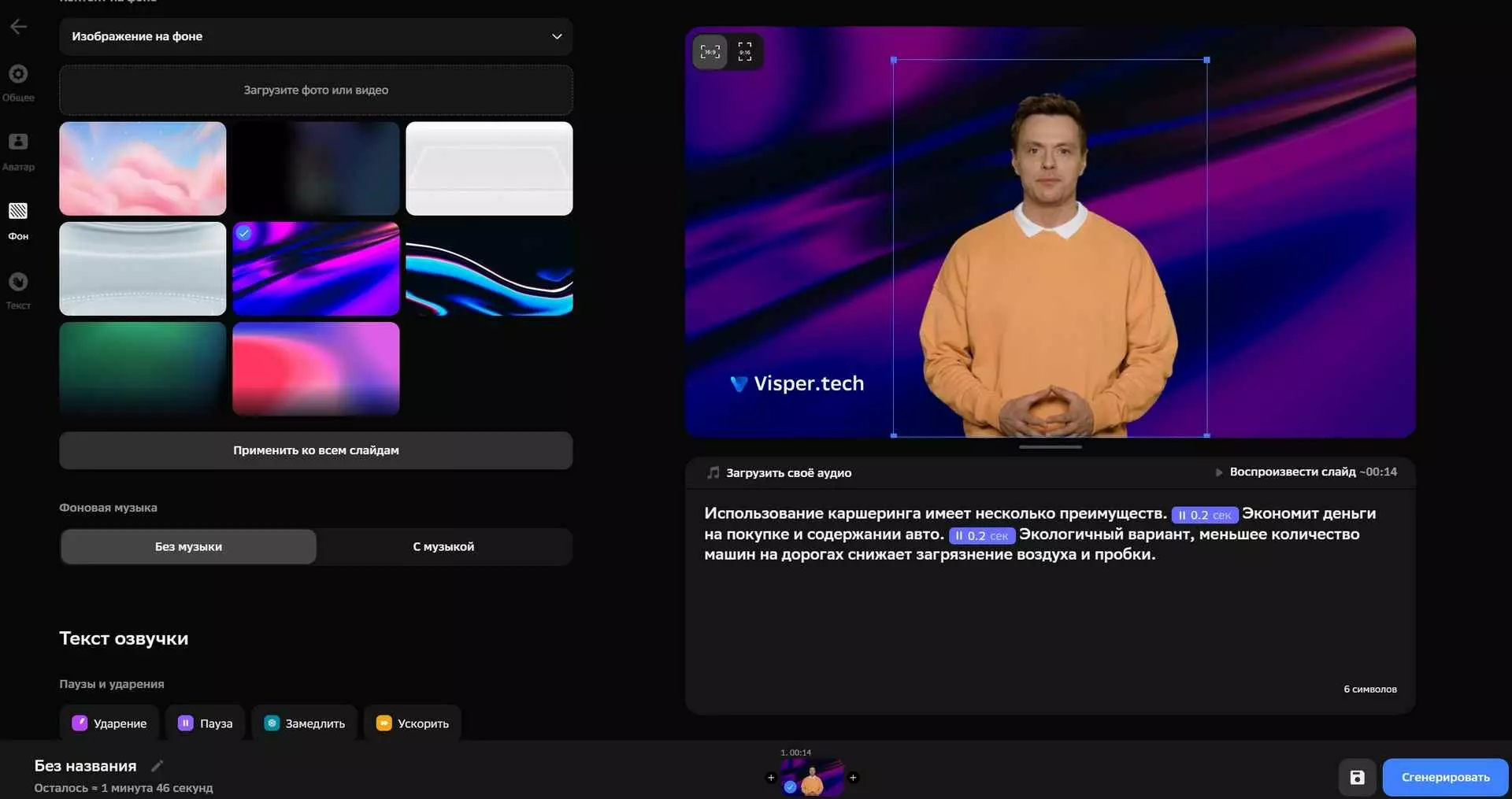 - Visper от «Сбера». В программе можно настраивать голос, жесты и стиль одежды ведущей, а также фон презентации.