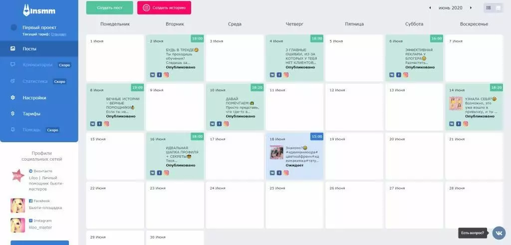 InSMM подходит для профессионального продвижения коммерческих продуктов в соцсетях. Какой функционал доступен пользователю: