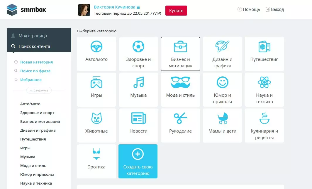 Функционал SmmBox включает парсинг контента для соцсетей. Пользователям доступен парсинг 16 тематических категорий, включая подборки товаров с Aliexpress. Есть возможность настроить автоматический повтор публикаций. Есть пакетная загрузка постов, в том числе из CSV файлов и сайтов конкурентов. Демо режим работает 7 дней, цена тарифа начинается от 300 руб. в месяц.