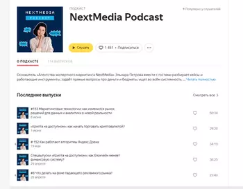 Проект Александра Дяченко посвящен возможностям продвижения в интернете и источникам для привлечения трафика. Эпизоды подкаста затрагивают актуальные вопросы интернет-маркетинга, брендинга и PR. В записи выпусков часто принимают участие приглашенные эксперты. Подкасты доступны в приложении Яндекс Музыка.