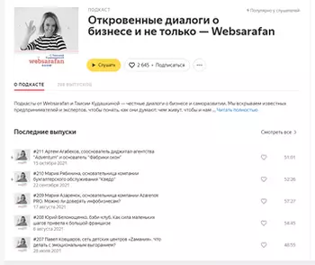 Подкаст посвящен инструментам для создания сайтов, SEO и другим способам продвижения. Над проектом работает большая группа специалистов. Пользуясь аудио уроками, можно вывести сайт на верхние строки поисковой выдачи и повысить конверсию системы. У проекта есть монетизация: команда экспертов проводит аудит сайтов и продает платные курсы.