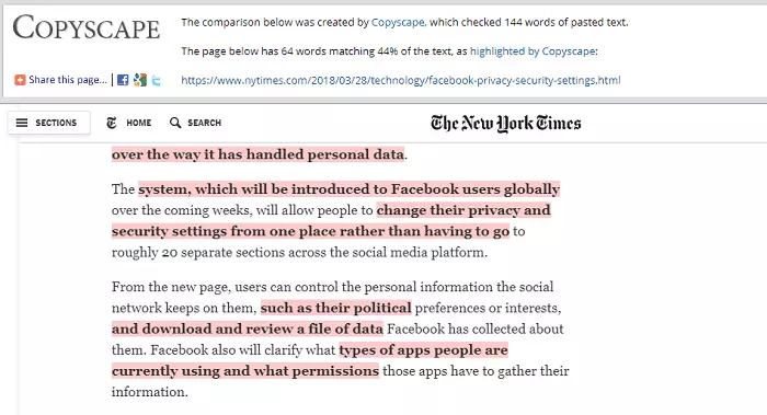 - При подозрении копирования контента, предусмотрено сравнение двух страниц сайта.