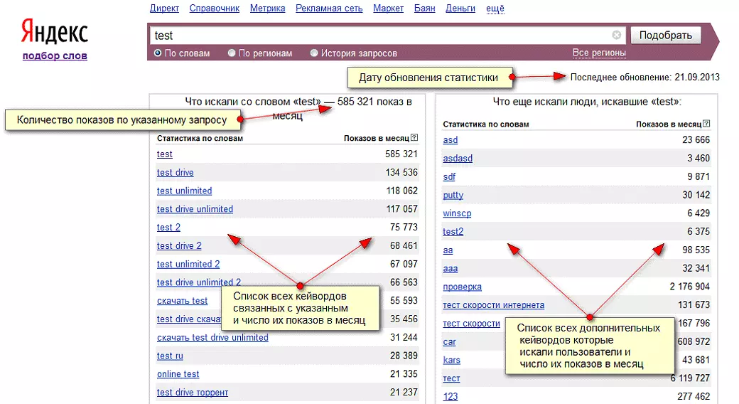 Инструмент актуален при продвижении сайта в яндексе. С его помощью можно увидеть: