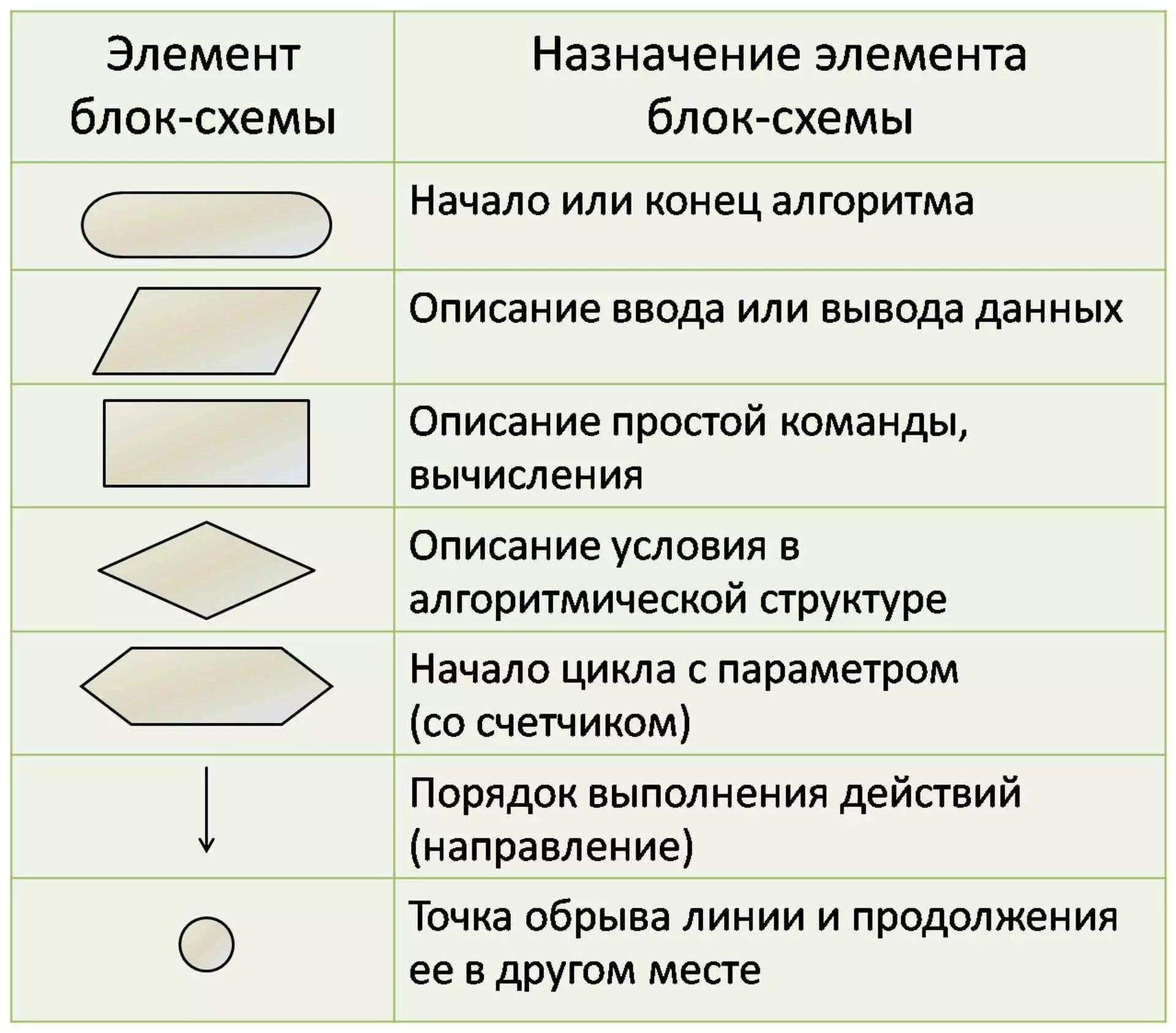 Как выглядят основные элементы блок-схем