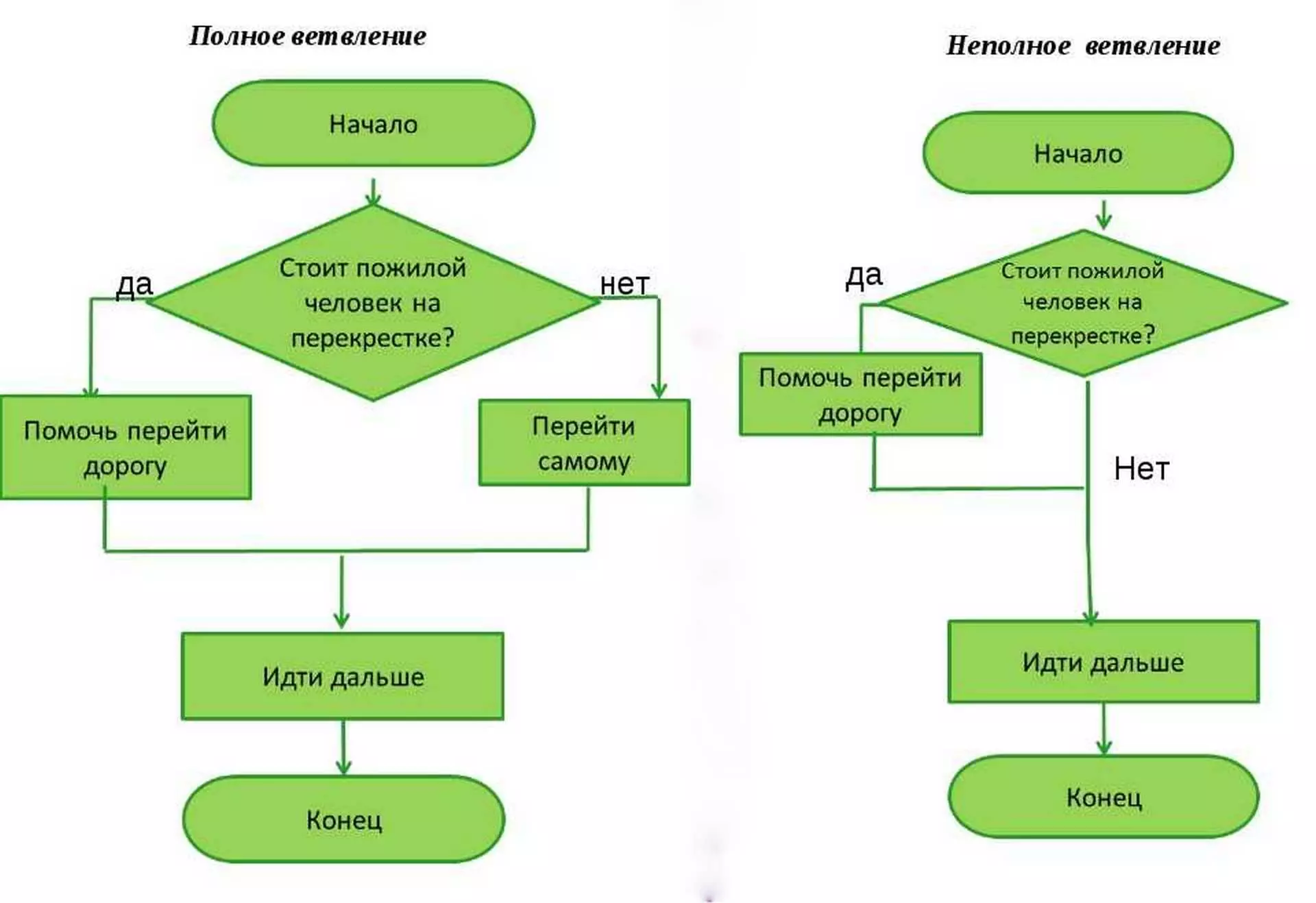 - Ветвящийся — это схема, в которой есть хотя бы одна развилка. Здесь порядок действий зависит от ответа на вопрос или выполнения условия. Разветвляющиесясхемы помогают решать сложные задачи.