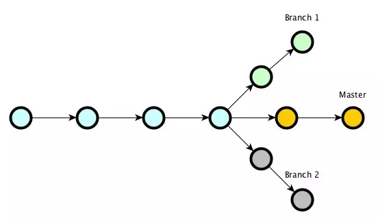 Ветвью называется именованная ссылка, переходящая на commit. Если коммит выпущен без branch, он передвигает ссылку на себя. Commit branch сохраняет старую ссылку и производит новый коммит.