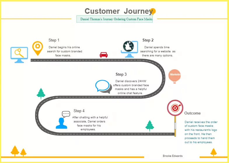 Не существует единого стандарта, как оформлять информацию на карте пути клиента. У каждой организации может быть свой способ отобразить маршрут. Его обычно представляют в формате инфографики или таблицы. Наглядно оформить схему можно в Microsoft Excel, Google Sheets и в любом графическом редакторе. Есть онлайн-сервисы, где можно визуализировать карту.