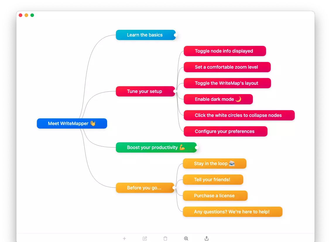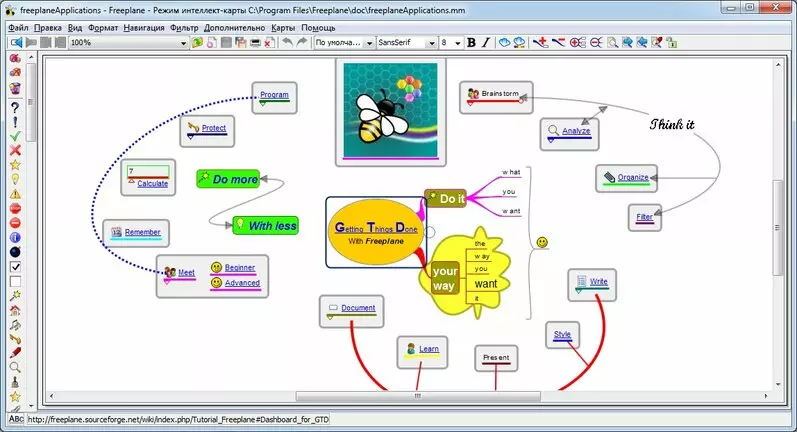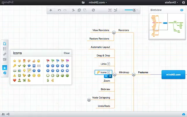 Бесплатный сервис для Windows, MacOS и Linux. Язык интерфейса — английский. Приложение содержит базовый функционал для майндмэппинга.