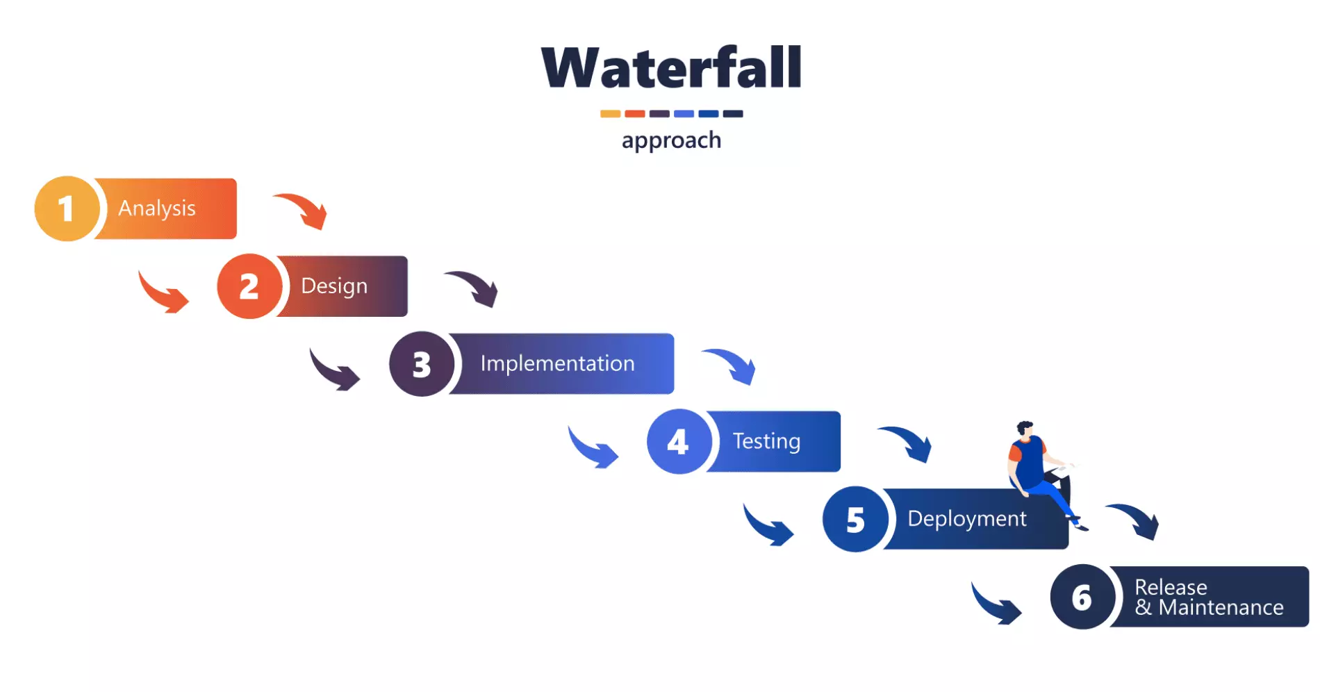 Водопадная методология управления проектами не предполагает гибкости. Создание продукта ведется по установленной схеме. Исполнители не возвращаются не предыдущие этапы проекта. Система подходит для проектов, где характеристики программы известны, и условия не меняются. Чтобы повысить эффективность и расширить сферу применения методики, возможно сочетать ее с элементами гибких подходов Agile и Scrum.