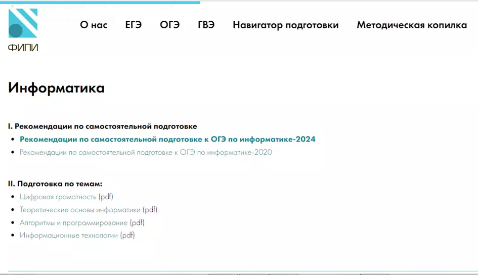 На сайте ФИПИ есть навигатор подготовки к ОГЭ. Вам нужно открыть документ в формате pdf: «Рекомендации по самостоятельной подготовке к ОГЭ по информатике». Здесь более подробно даны темы, которые будут на экзамене. В этом документе есть план подготовки, который вы можете использовать.