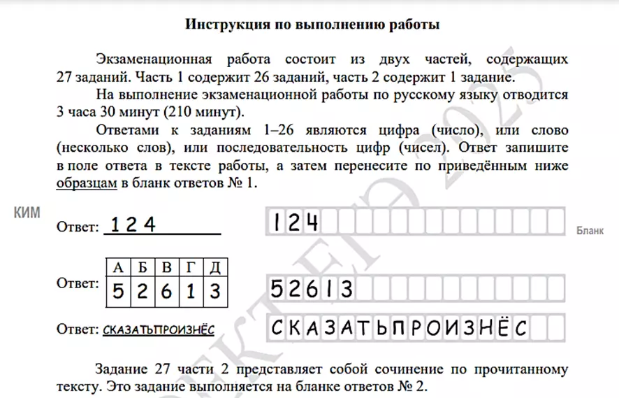 Из демоверсии вы узнаете, какие задания будут на экзамене – примерный вариант по каждому предмету. На картинке показана структура экзаменационной работы по русскому языку: