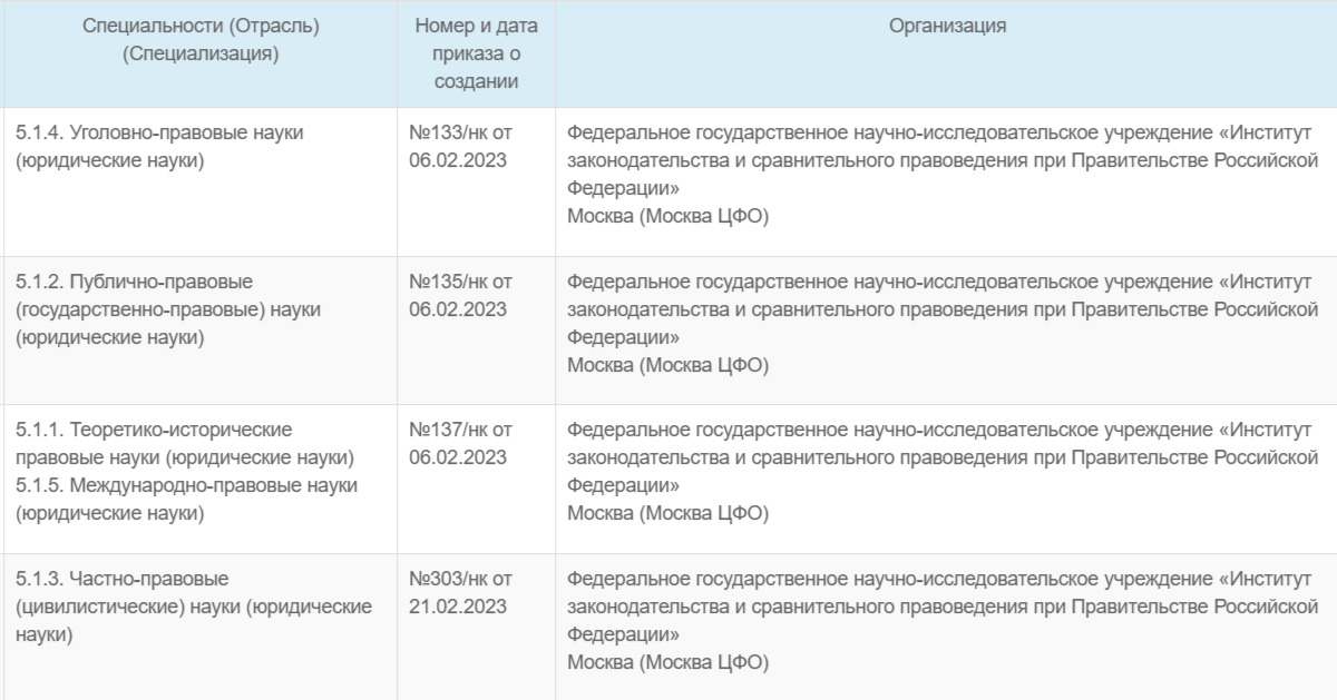 Перечень действующих диссертационных советов можно найти на сайте Высшей аттестационной комиссии. Там можно подобрать организацию по своей специальности. Вот пример организации с диссертационными советами по юридическим наукам: