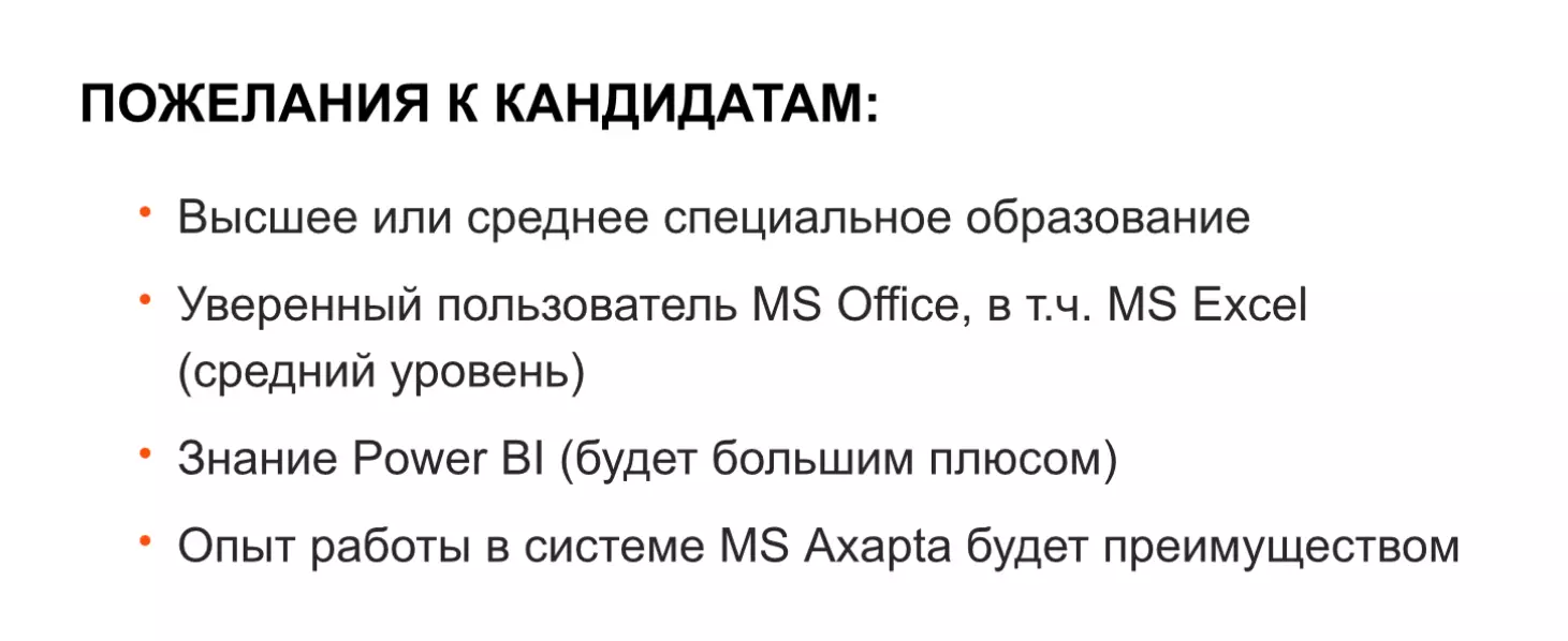 Требования к вакансии специалиста по документообороту от ЦУМ на сайте hh.ru